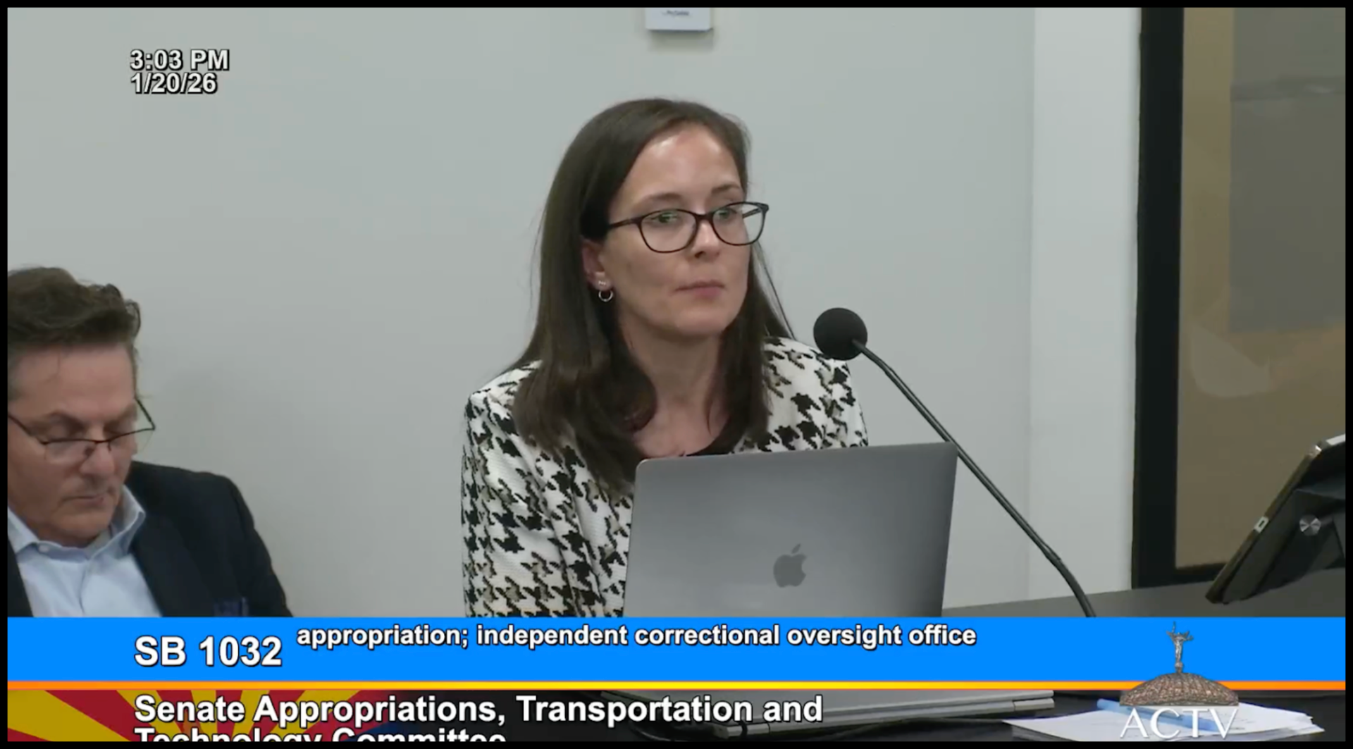 JAN’s Senior State Policy Manager, Estrella López, testifying before the Arizona Senate Appropriations Committee in support of SB 1032, Independent Correctional Oversight Office funding. The bill passed committee with a unanimous 10-0 vote.